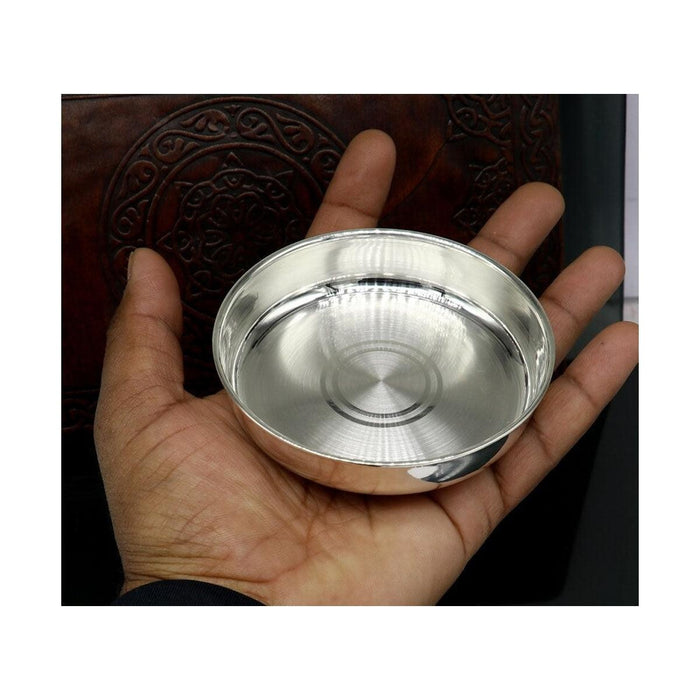 999 fine silver handmade Glass/tray/plate excellent gifting home dining puja article décor silver vessels, Indian opinion is silver has proven antibacterial properties. It is believed that eating out of the same is healthy and can help prevent disease-causing bacteria from spreading. This is one of the main reasons medicines are given to babies in silver bowls or trays.